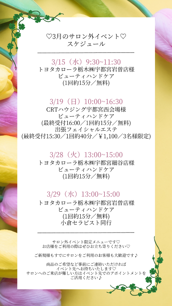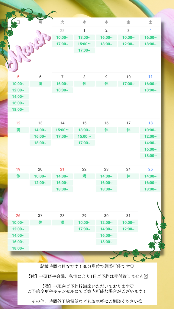 皆様にはご予約が取りにくいなど、ご不便をおかけするような形となってしまい大変心苦しいことですが、サロンの質向上のため、ご理解とご協力をお願いいたします(⑉•ᴗ•⑉)