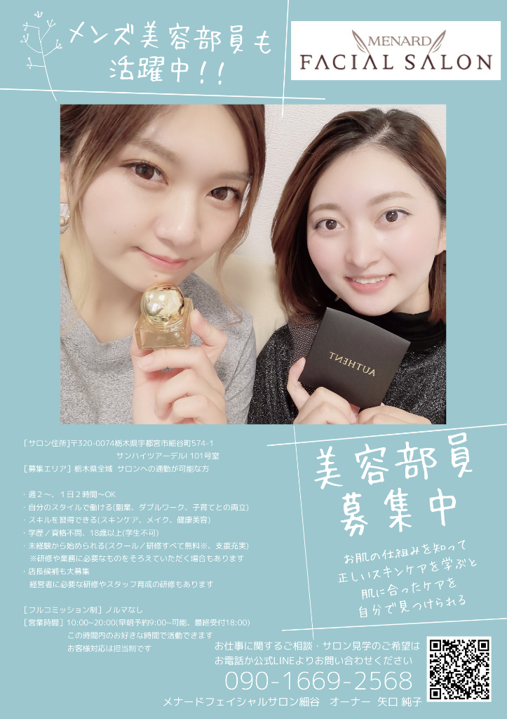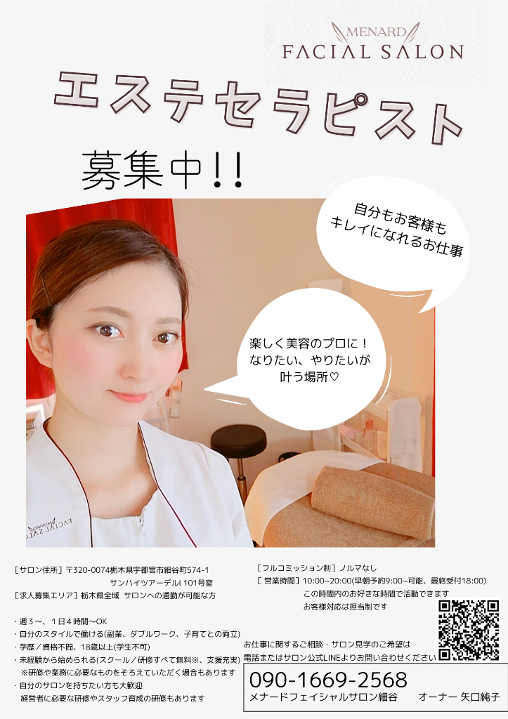 宇都宮市細谷町にあるフェイシャルエステサロンで一緒にお仕事しませんか?